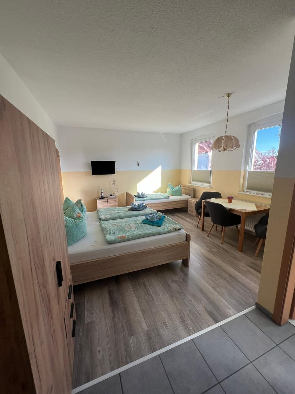 Die Ferienwohnung ist bodenständig ausgestattet. Alles da, was man dringend braucht. Fußboden und Betten neu.