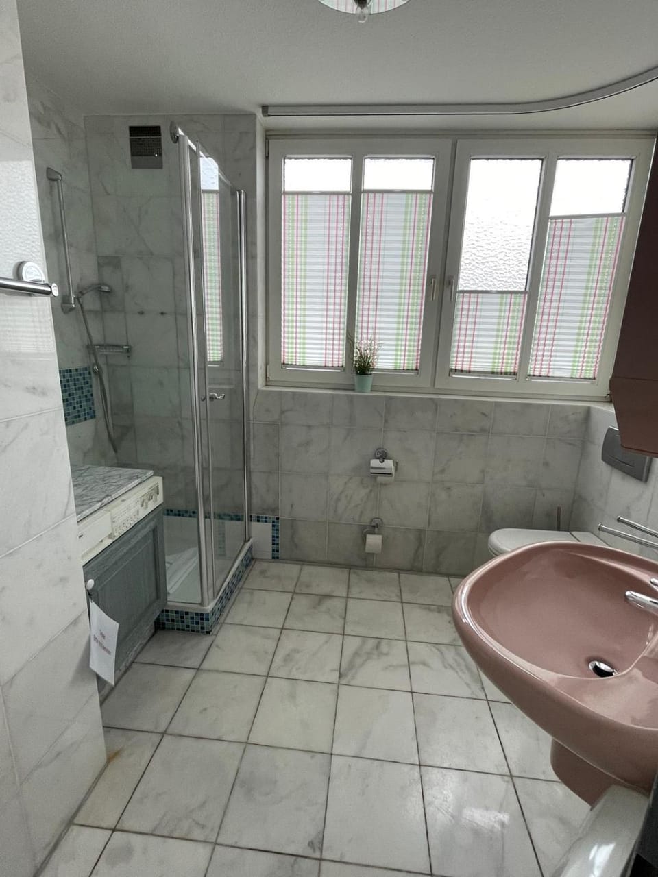 Wassermischung an der Dusche problematisch, sowie am Waschbecken. Entweder sehr heiß und plötzlich eisig kalt oder umgekehrt.