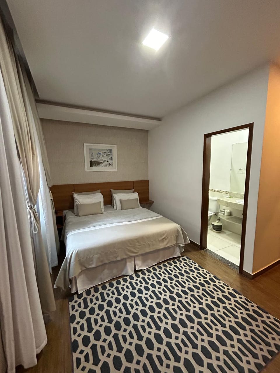 A noite quando estávamos dormindo teve muito barulho do quarto ao lado, pensamos que era um hóspede que chegou tarde, em torno de meia noite e uma da madrugada. Quando acordamos ao sair do quarto vimos o quarto ao lado aberto e vimos um monte de caixas empilhadas, então era do hotel!!