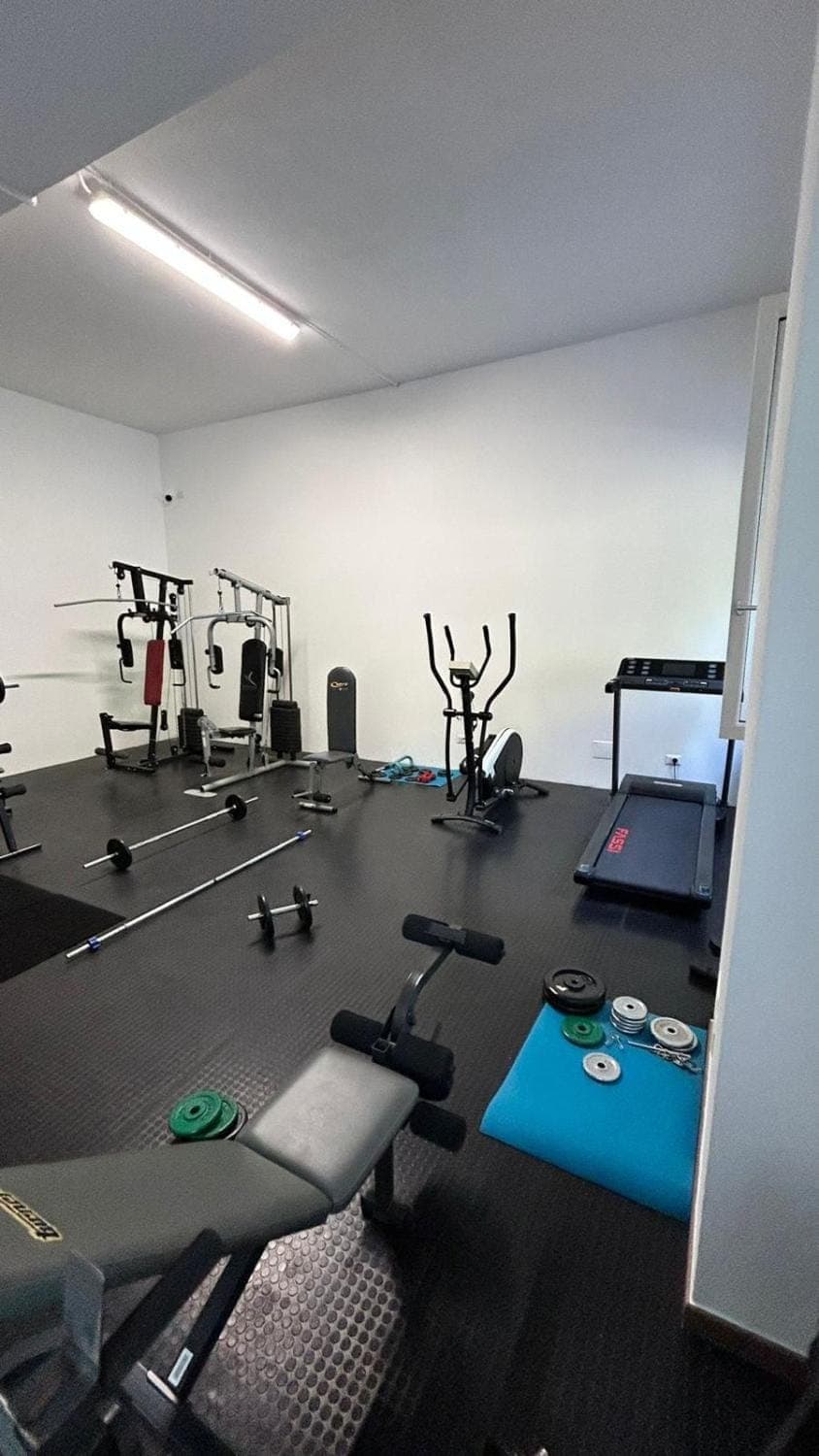 The "gym" if you can call it that way is asking for an accident, weights falling of the bars even if you secure them, old and dangerous. Funny that they put a sign (exercise at your own risk)! Joke