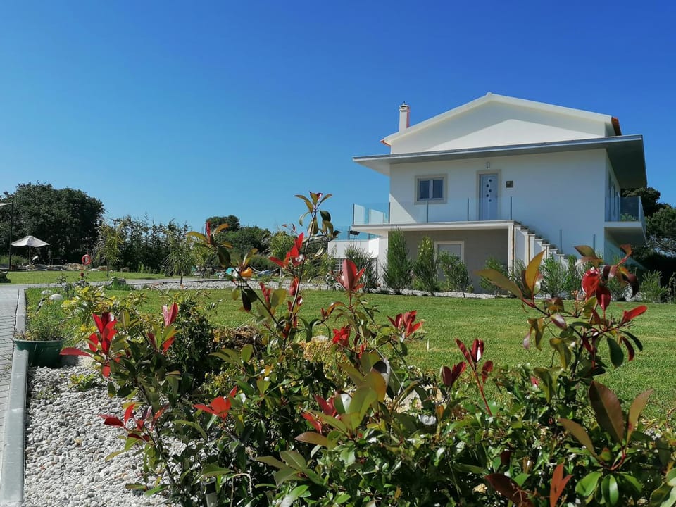 O espaço exterior espectacular, ótimo para quem tem crianças espaço amplo, com parque infantil,trampolim, um mini campo para jogar a bola com duas redes,uma piscina espectacular, área para fazer churrasco,l espaço exterior muito limpo,e muito sossegado.