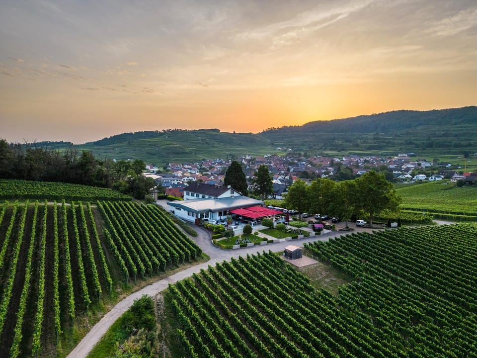 Ruhige Lage mit phantastischem Ausblick in den Kaiserstuhl (z.B. Zimmer 33) und Weitsicht zu den Vogesen. Sorgfältig angerichtetes und reichhaltiges Frühstücksbuffet: qualitativ hochwertig!