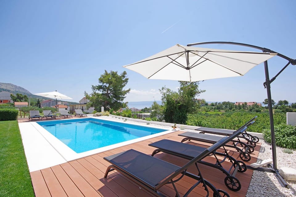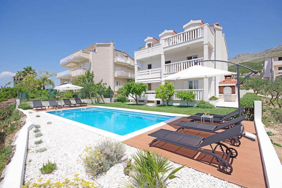 The hosts were lovely, very friendly and welcoming, allowing us to leave our bags whilst they prepared the apartment. The apartment was spacious, comfortable and clean. The pool was a good size and maintained every evening. The location was great; private and quiet but close to the beach and with stunning views. Also close to the bus route to Split which was a short (and cheap!) ride. Plenty of supermarkets and places to eat nearby, many on the beach. It really is as nice as it looks in the photos!