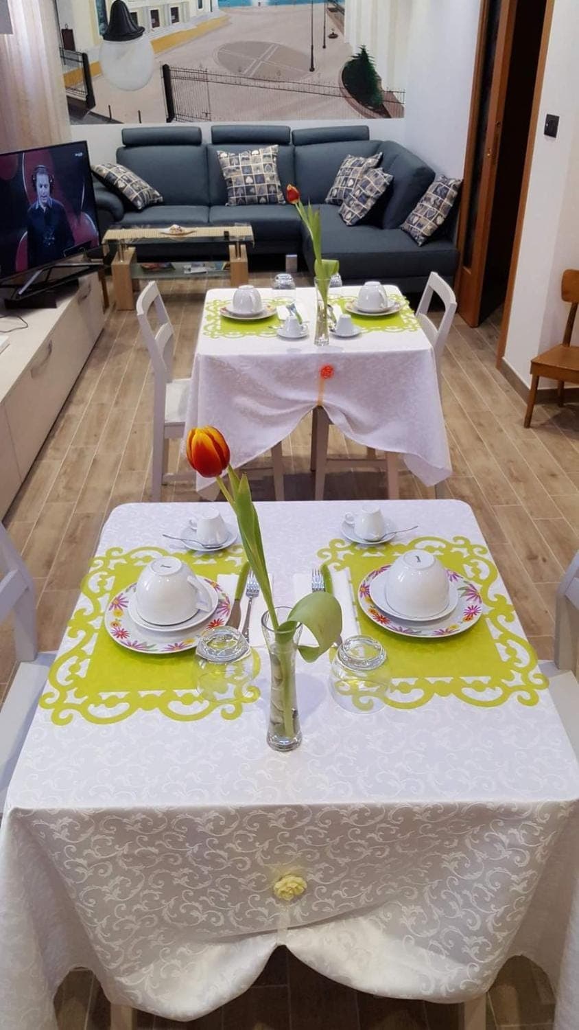 Da keine anderen Gäte anwesend waren hatte ich die ganze Wohnung für mich. Sehr nette und engagierte Gastgeber. Die Dame des Hauses ist extra am morgen gekommen und hat mir ein üppiges Frühstück bereitet.