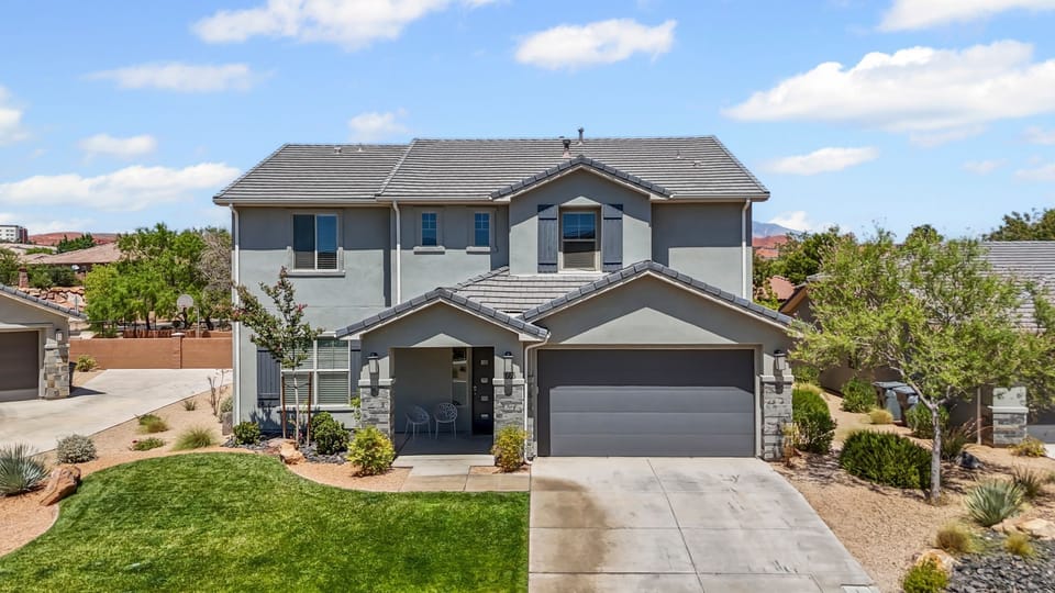 New home in Sienna Hills subdivision. Can sleep 20! Neighborhood pool just finished! Game room up stairs with ping pong table and pool table. New putting green in the backyard. Backs right up to Sienna Hills park that includes large soccer field, playground, splash pad, b ball court and picnic table. Brand new beds and all furniture. Two king, four queens, two triple stack bunk beds, and 1 couch beds. House has large table that can seat 12, 4 at the bar and a folding table to seat 6 more. Conveniently located 10 min from quail creek reservoir, Sand Hollow, Washington rec center, several incredible golf courses, Walmart, and restaurants.