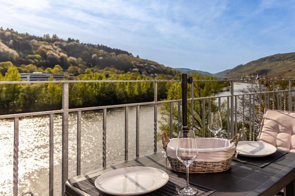 Ich hatte das oberste, kleine Apartement vom Ferienhaus Moselherz mit dem Spitzdach. Für 1-2 Personen ist diese Unterkunft gut geeignet. Für mich war der Ausblick auf die Mosel entscheidend. Und damit punktet die Unterkunft besonders. Vom Balkon aus hat man einen hervorragenden Weitblick links in Richtung Zell, sowie rechts in Richtung Bullay. Schon vom kombinierten Wohn-und Küchenbereich aus blickt man auf den Fluß. Vom Schlafzimmer aus hat man den Blick auf die Weinberge. Ausstattung und Sauberkeit.. alles gut. Ich würde diese FeWo nochmal buchen!