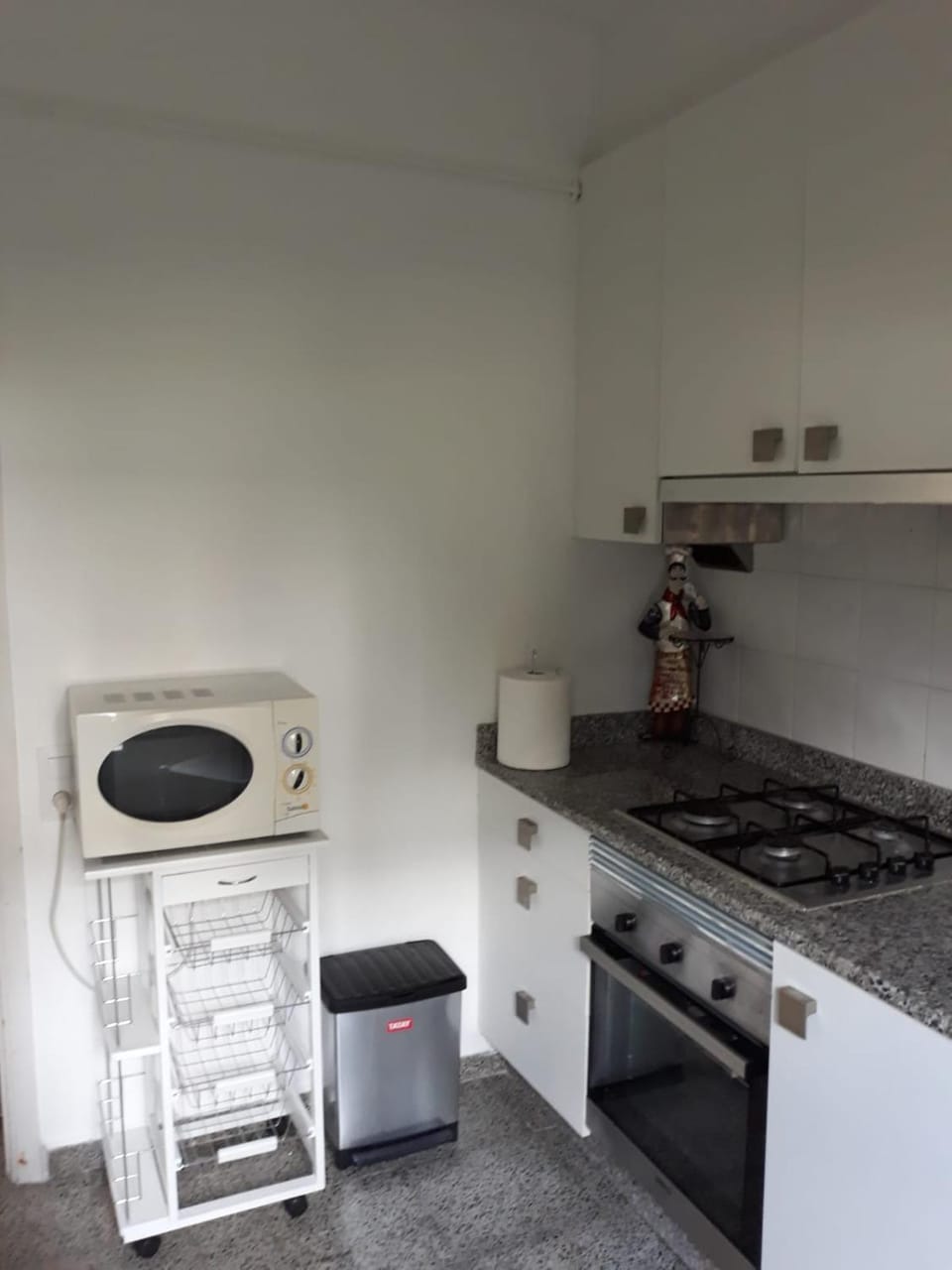 Poucos utensilios e loiça de cozinha.
