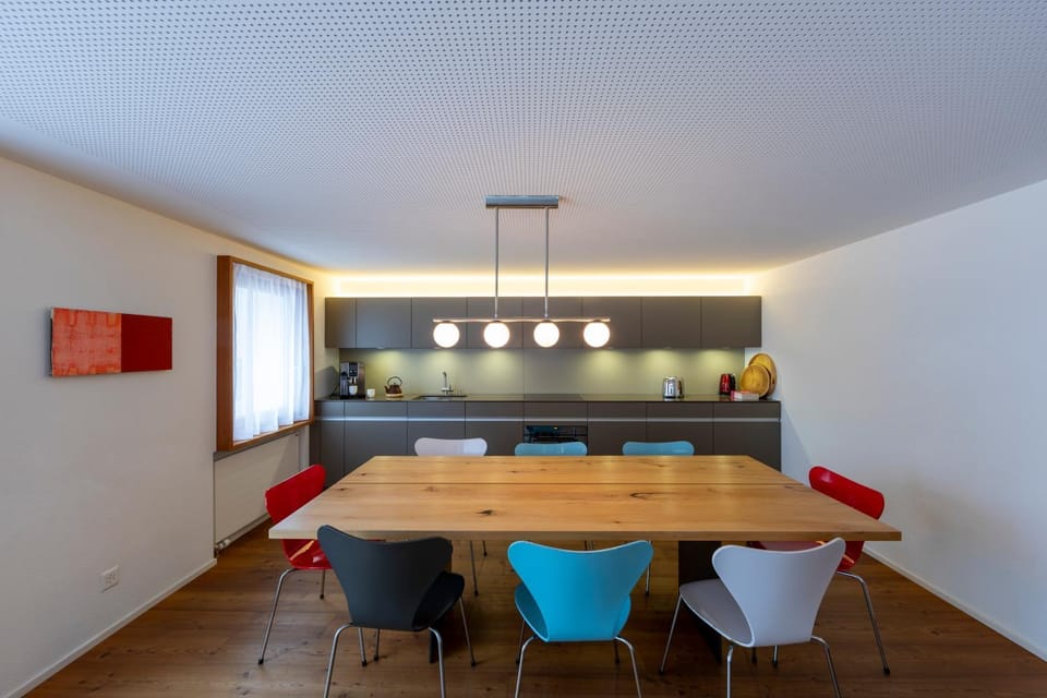 Cannot speak highly enough of this property or Andermatt. Within 5 mins walk of everything, bars, Restaurants, Supermarket and Bakery. We we're a group of 5 cyclists, the advantage of a garage to build/strip and store bikes was brilliant,The cycling in this area is outstandingly Beautiful and we will definitely be back and will stay at UnderDach for sure.