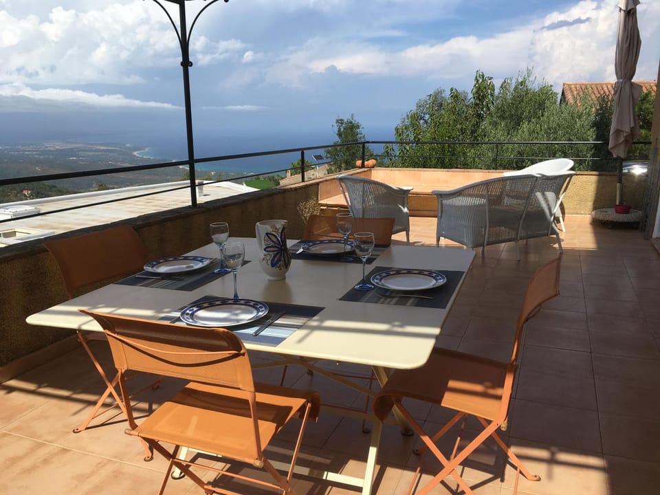 Die Terrasse mit Aussicht aufs Meer.