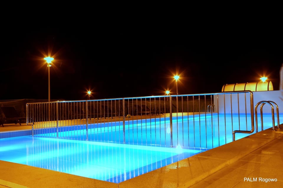 Yes, a swimming pool is available for use at Palm Rogowo. Enjoy the water!