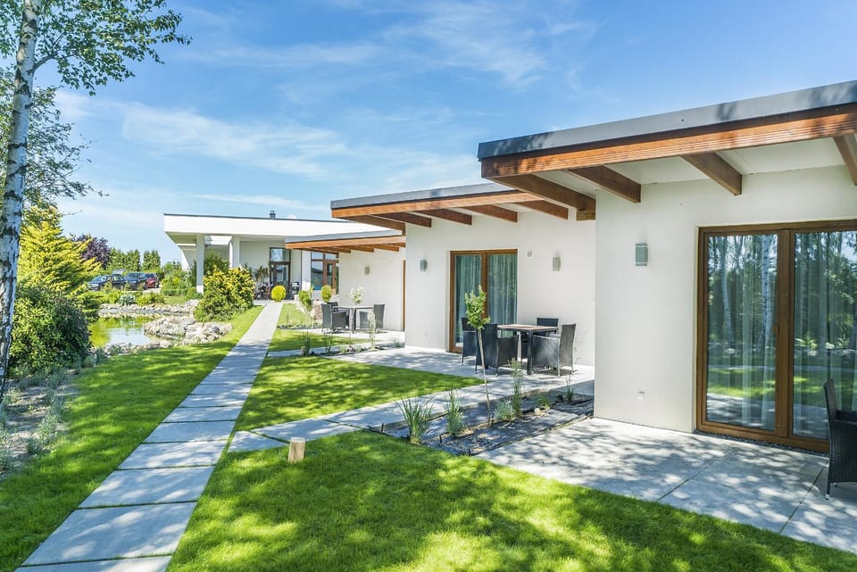 Bardzo fajny ośrodek! Przemili właściciele, bardzo dobry kontakt, zero problemów. Dość duży teren ośrodka, dużo zieleni, oczko wodne z pięknymi Karpiami Koi i Karasiami Ozdobnymi. Na terenie tylko 4 domki - cisza, spokój, relaks. Udogodnieniami na pewno są: plac zabaw dla dzieci, miejsce na ognisko, jacuzzi z podgrzewaną wodą, boisko z podłożem z czystego piasku do siatkówki plażowej lub innych sportów, hamak, fotele wiszące (hamakowe) między drzewami. oczko wodne z rybami, dwie papugi w klatce, pawie, pawilon do wspólnego spędzania czasu z tv i stołami (np. do gier karcianych)... ogólnie super! Cisza, spokój, przyroda.