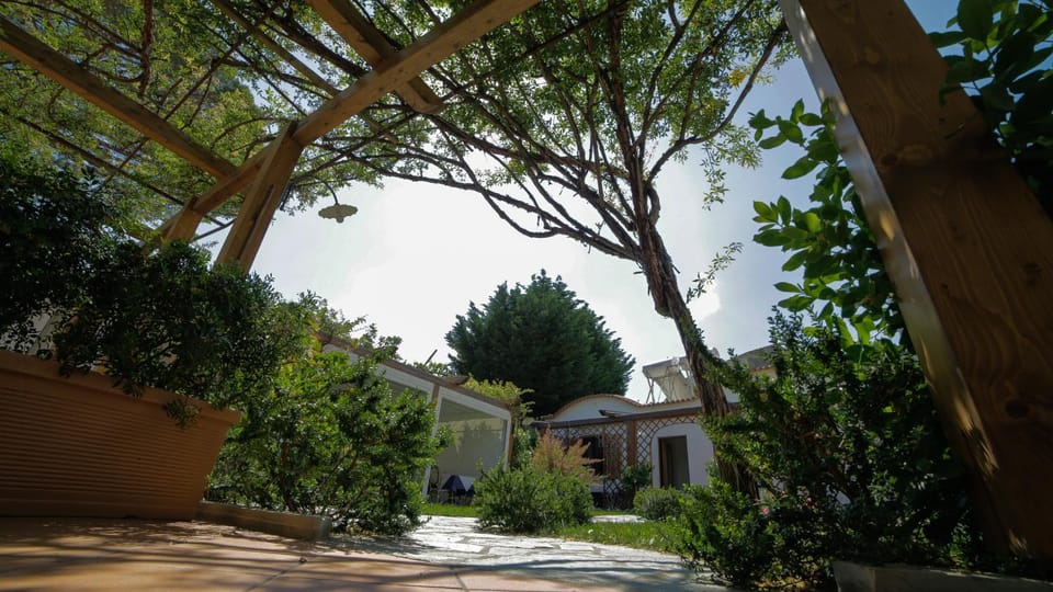 Great location, flight of steps up to accommodation which has a lovely garden. We had a ground floor apartment which had a seating area under a pergola.