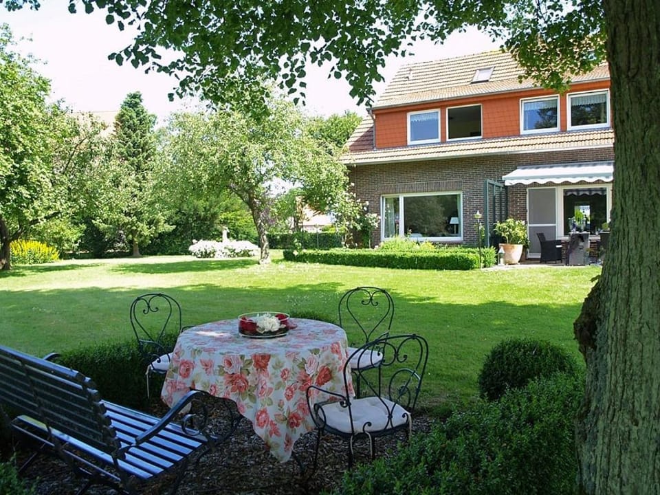 Das Frühstück war sehr abwechslungsreich mit hochwertigen Produkten; jeden Tag gab es eine Überraschung. Der Garten ist ein Traum, mit Teich, Strandkörben, Gartenpavillon unterschiedlichen Sitzplätzen auf dem ganzen Grundstück. Alles war sehr geschmackvoll dekoriert. Ganz besonders hervorzuheben ist die freundliche und kommunikative Inhaberin, die dieses Haus mit sehr viel Herz führt.