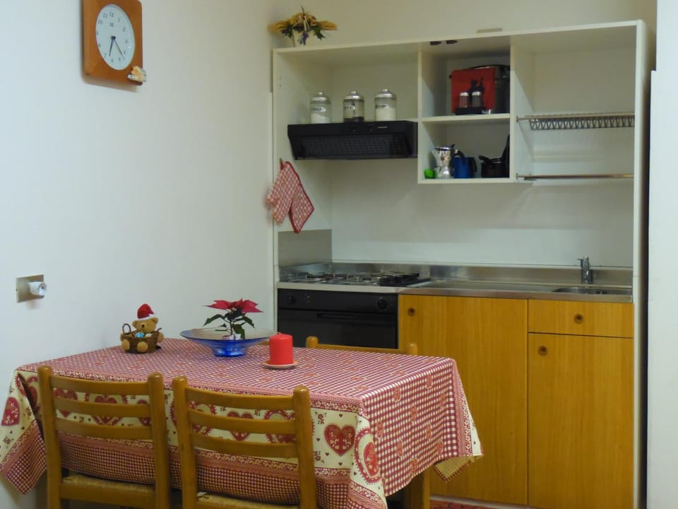 We called it our tiny home. A compact unit that has all you need. Espicially loved the cubbords to put away your belongings. Walking distance to Bormio.