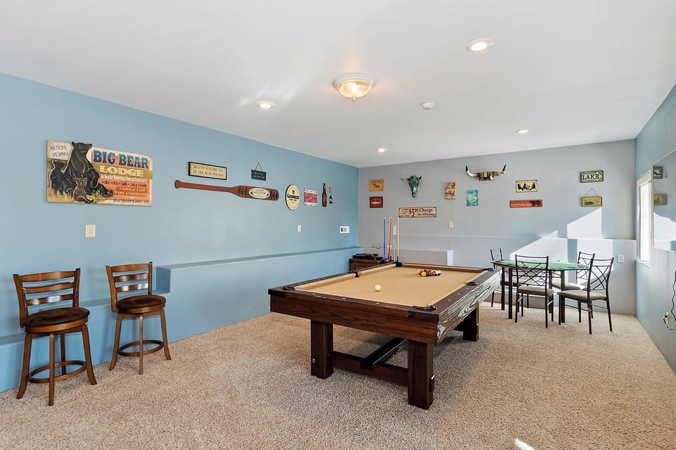Let the good times roll in your private downstairs game zone! This cozy hangout is perfect for après-ski fun, rainy day entertainment, or competitive card nights with the crew. From pool to poker, it's a space built for memory-making.