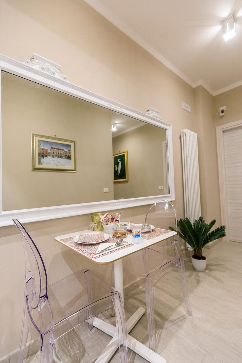 Impossibilità di farsi anche solo un caffè. Una camomilla o un tè. Nulla per la colazione . Per fortuna la posizione centralissima offriva bar a pochi passi. Accoglienza frettolosa , priva di qualunque indicazione sulla gestione ed della pompa di calore che non sapevamo ci fosse mentre la camera era fredda perché le finestre erano restate aperte ed i caloriferi tiepidi e durante la notte spenti. Non ci sono neppure state mostrate le camere. Solo consegna chiavi l