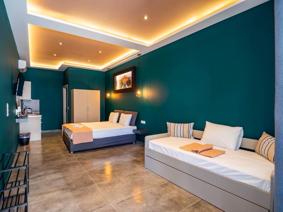 "The property is new and the rooms are spacious, the bed is big unlike other properties in Limenas. Everyday you have housekeeping.