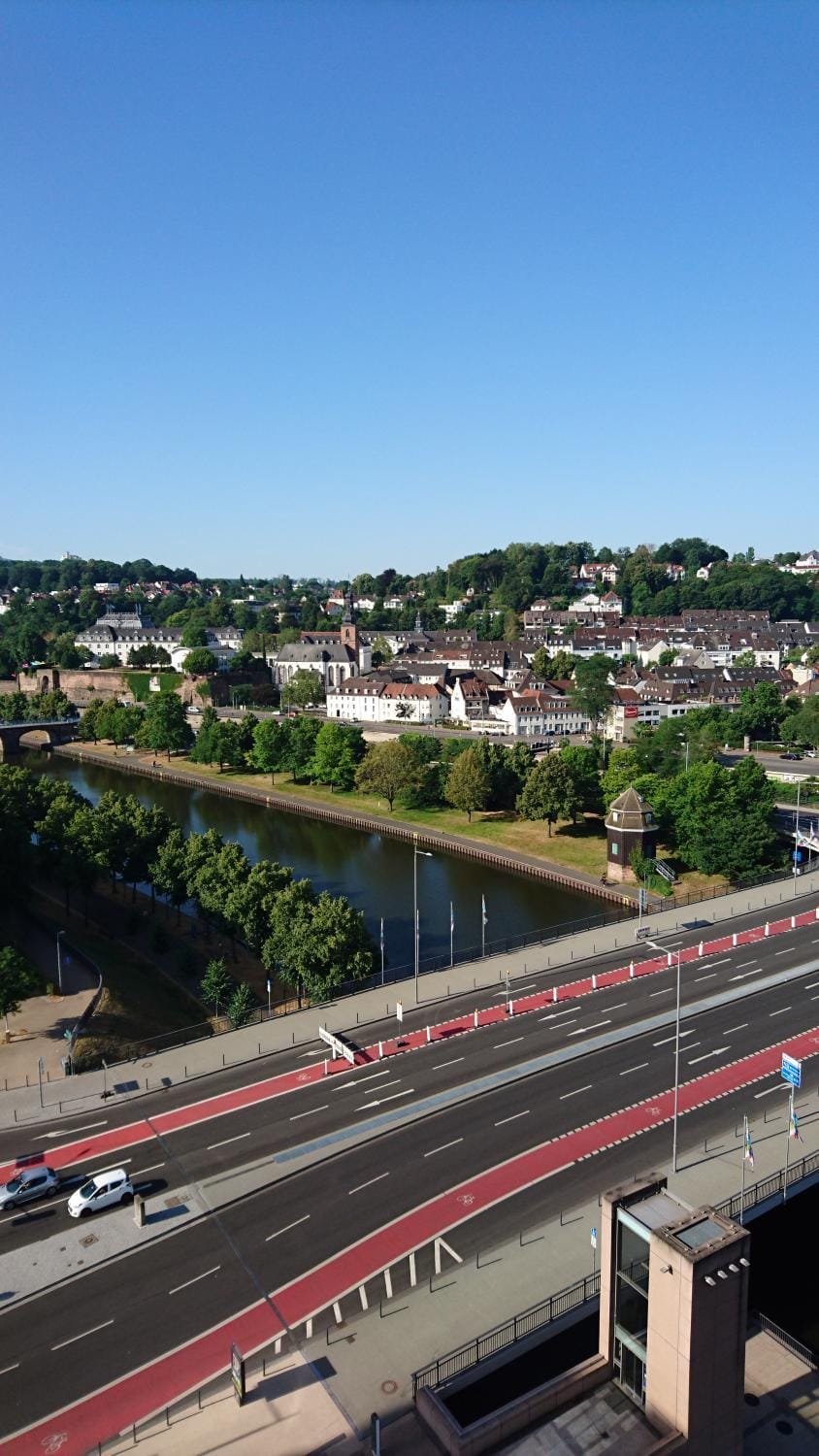 Leider ist die Kreuzung unten und auch das Saarufer mit seinen Cafés schon sehr laut.