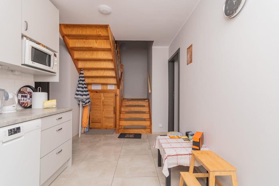 Tak lokalizacja była w porządku byliśmy rowerami więc odległości nie były problemem.Bardzo miła i uczynna pani gospodarz dbająca o porządek ,mieszkanko fajne ,taras i drugie wejście przez sypialnię od parkingu (podwórza) łatwy rozładunek i załadunek bagażu wbrew temu co ktoś wcześniej napisał wyjazd z ostatniego miejsca parkingowe nie stwarzało problemu miejsca wyznaczone oddzielone krawężnikami nawet Hammer by wyjechał 😀 dostęp do warzywniaka . drzewa z czereśniami, wiśniami i altanki z grillem węglowym i gazowym i oczywiście tacki i węgiel drzewny na wyposażeniu.W mieszkaniu aneks kuchenny z wszystkimi niezbędnymi przyborami, naczyniami,garnkami, patelniami itp. przyprawy dostępne w kuchni ogólnodostępnej,klimatyzacja w pokoju przynajmniej w tym na dole z tarasem więc same pozytywy