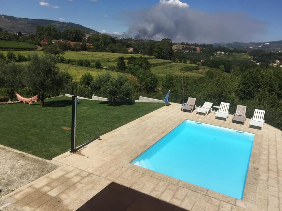 Yes, a swimming pool is available for use at Quinta do Couto (alojamento local). Enjoy the water!