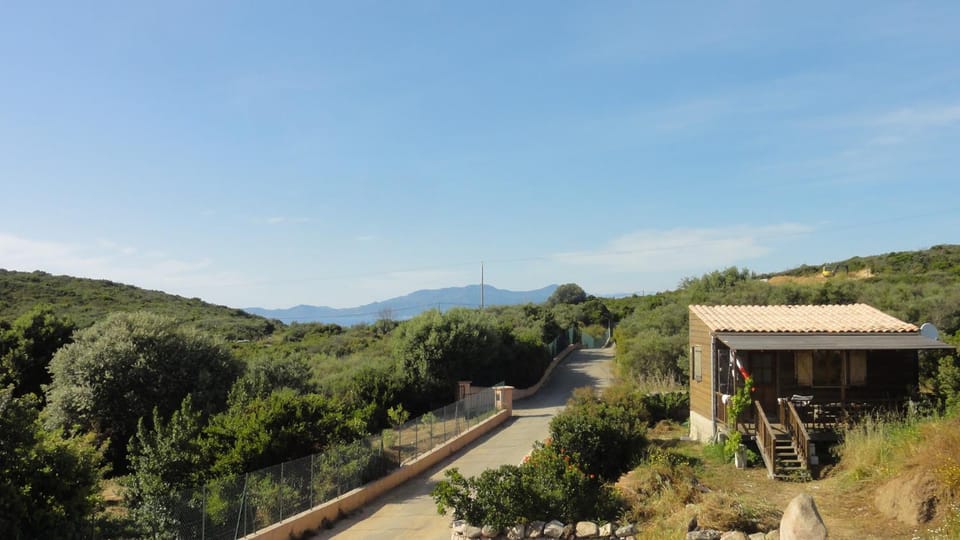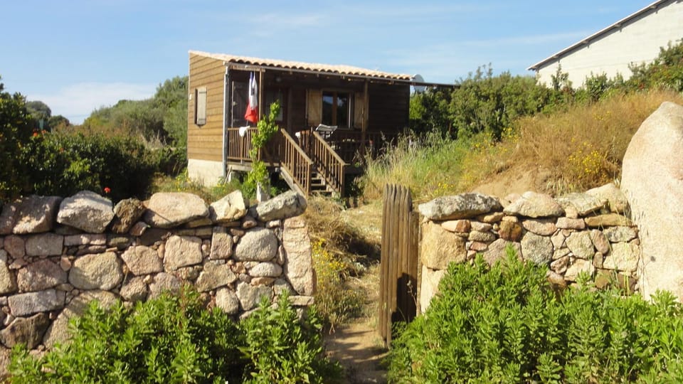 "charming Corsican style wood cabin with all mod cons inside"