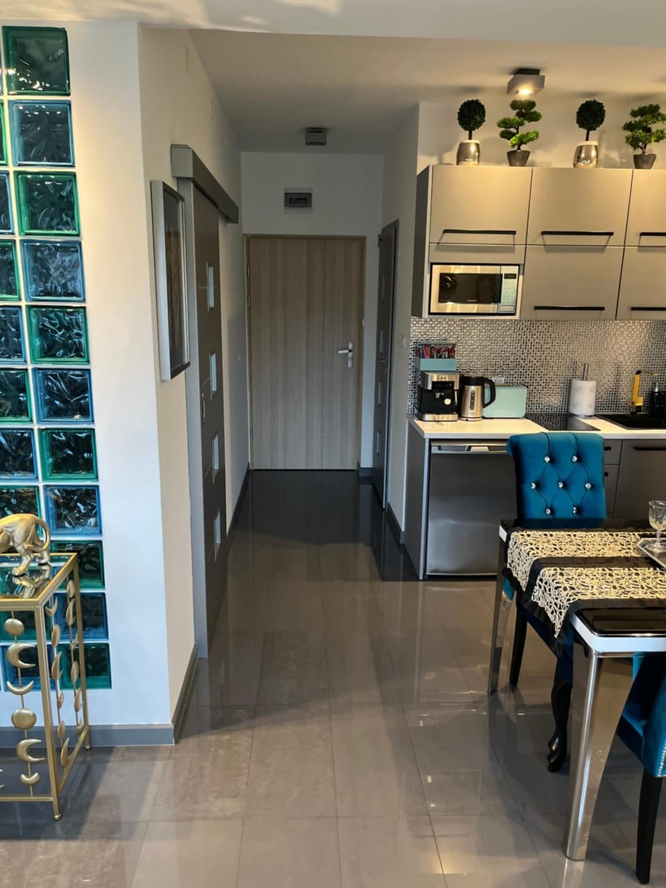 przepiękny apartament, wszystko bardzo zadbane, czyste i nowe. Wystrój jest powalający! Do dyspozycji gości jest ogromny wybór różnych herbat i kaw, więc nie trzeba zabierać swoich :)