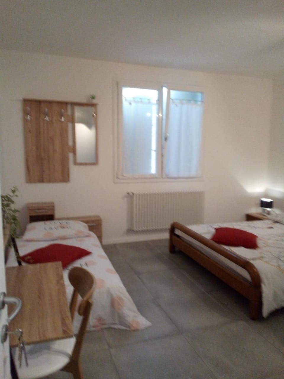 It is very cold in the room because, according to the host, the heating is turned on automatically. The outside temperature was 6 degrees in the morning, 11-15 degrees in the afternoon. For that temperature, the heating should be on all the time. The air conditioner has a heating option, but it does not heat the room.