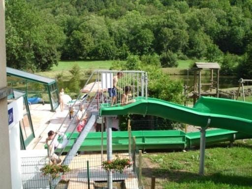 "Very nice host, well-equipped kitchenette with dish-washer, swimming pool with water slide for kids, playing field, BBQ spots, outdoor tables in shade, many attractions for kids in the neighbourhood (..."