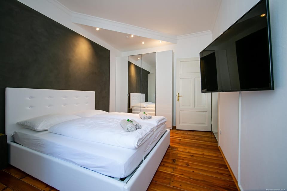Die Wohnung ist zentral gelegen und sehr groß. Das Internet ist schnell.