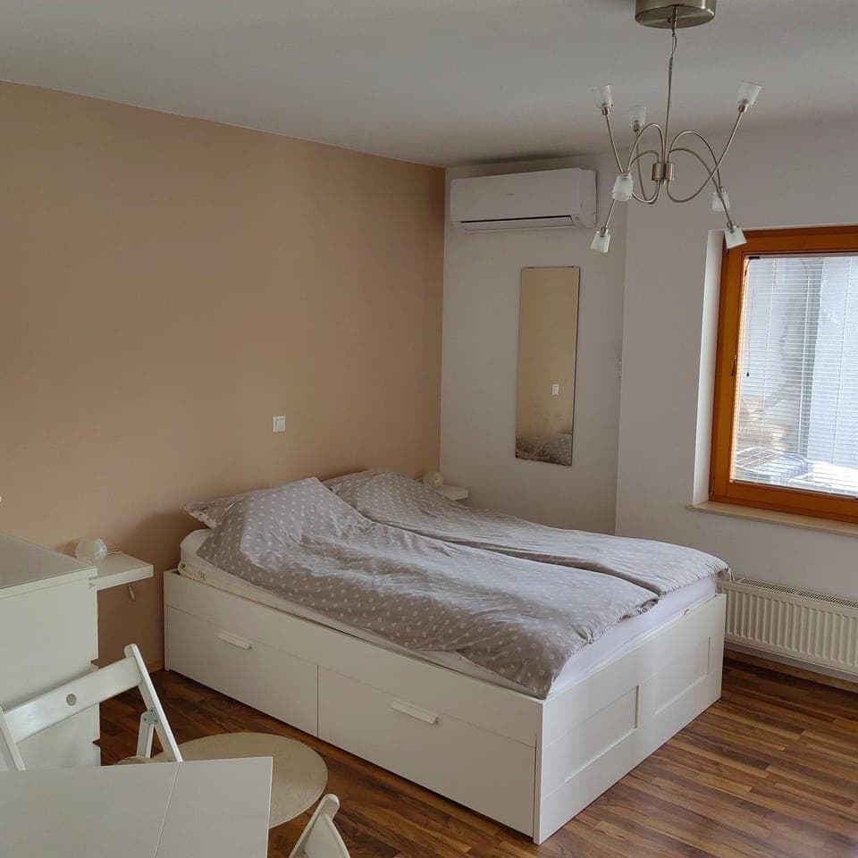 Time we spent in this apartment was perfect. After our arrival we received our keys. Owners were very nice, they offered us also vegetables from their garden and we could use their bikes to get to the lake. Journey between apartment and the lake was therefore easy and very nice. Near the lake was also supermarket. Cleanness of the apartment was excellent. We also got new towels during our stay. On our last day after check-out we were allowed to let our car on their parking space and borrow bikes again. I cannot say anything negative!