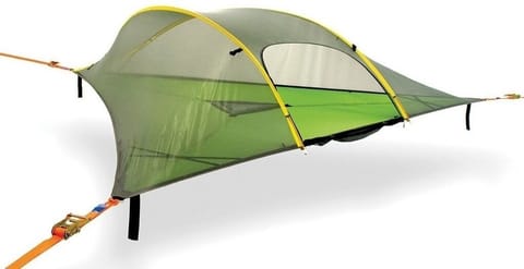 The two tree tents are suitable for a maximum of 3 persons and float between trees on a hill with a beautiful lake view.