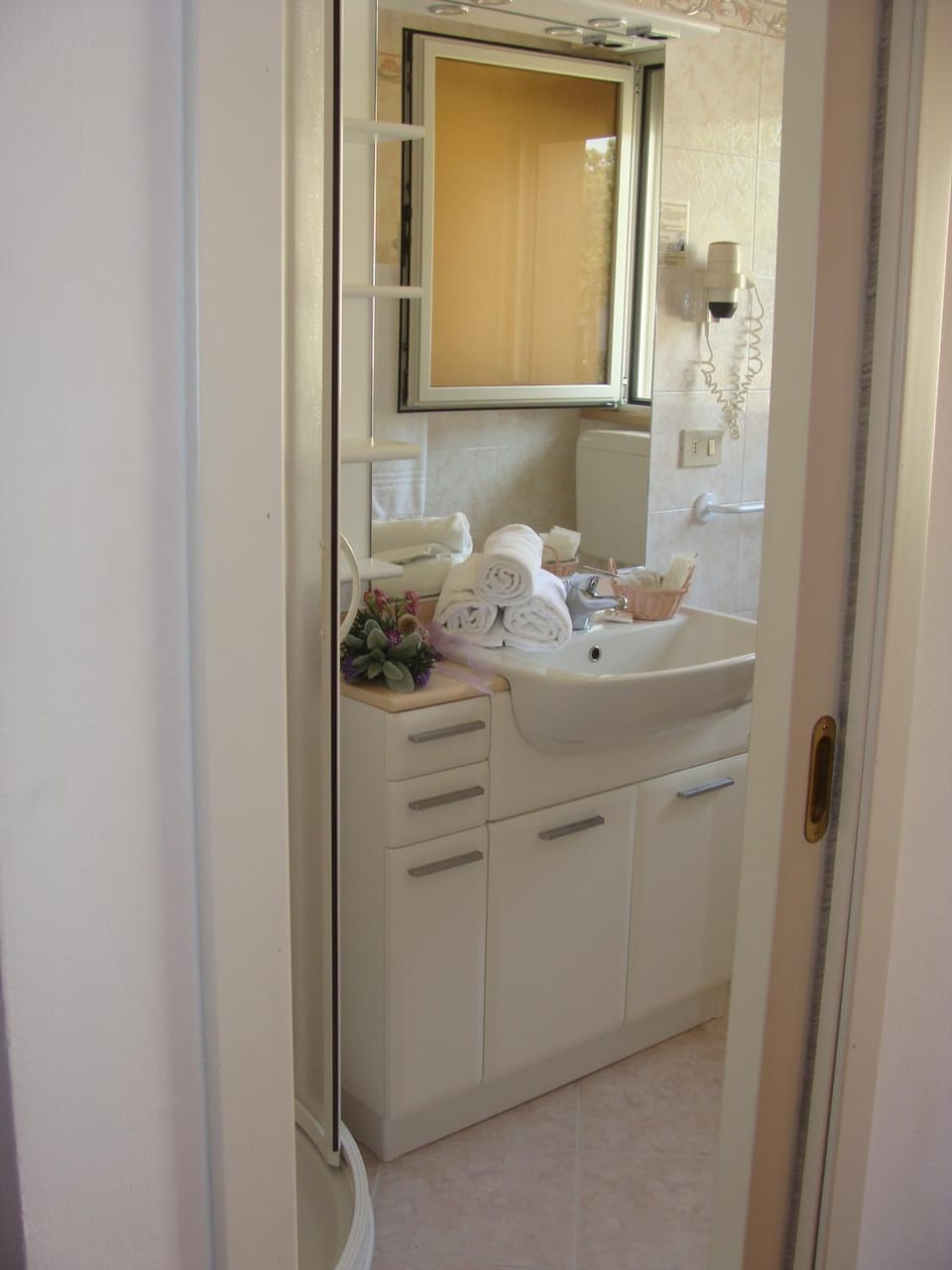 A fürdőszoba. Utólag értesültünk arról hogy a szobához nem jár reggeli,ez plusz kiadás lett. Utólag derült ki hogy a parti napernyő sem jár,pedig úgy volt hogy jár minden szobához. Ez is plusz költség lett.