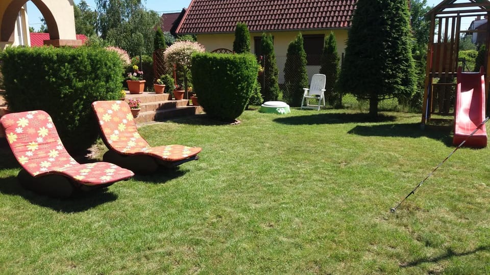 Cisza, spokój. Przemili właściciele. Domowy klimat. Kolorowo, piekne kwiaty, ogród. Na nogach do plaży ok 25 min. Można pożyczyć rowery, parawany na plażę. Jest zjeżdżalnia, piaskownica dla mnieszych dzieci. Naprawdę polecam.