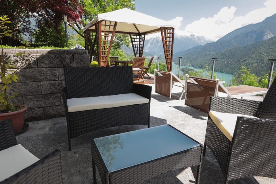 Eine sehr hübsche kleine Wohnung. Der Blick vom Balkon aus auf den Lago di Cadore und die Berge ist wundervoll.