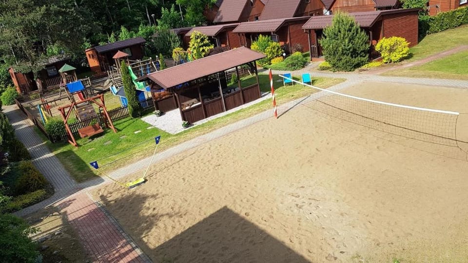 Domki Przy Lesie in Stegna provides accommodations with a garden, barbecue facilities, and a shared lounge. Complimentary Wifi is available throughout the property and private parking is available on site. The resort village has private entrance.