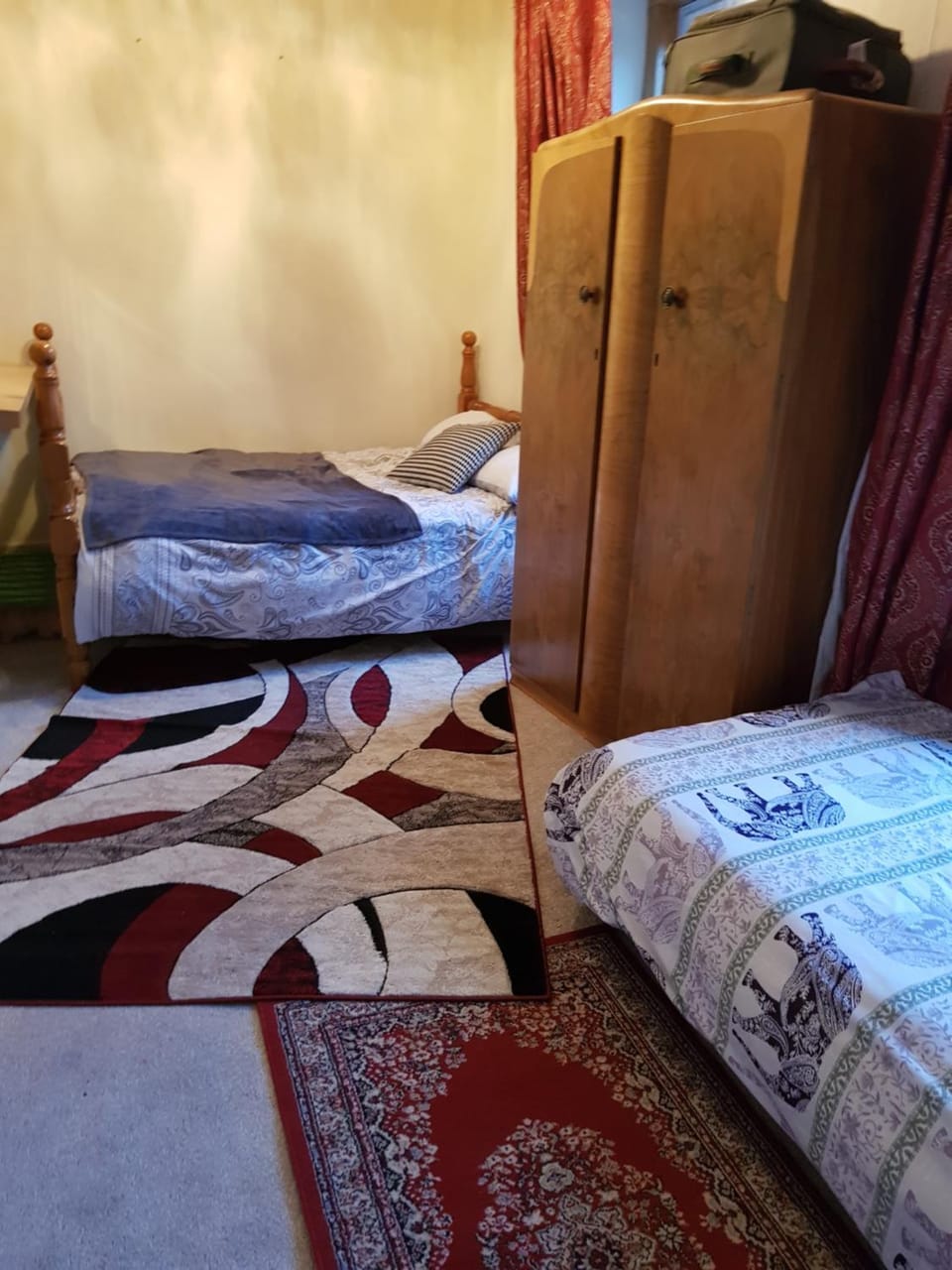 Shared bathroom, in a room that's not empty of other people's things.