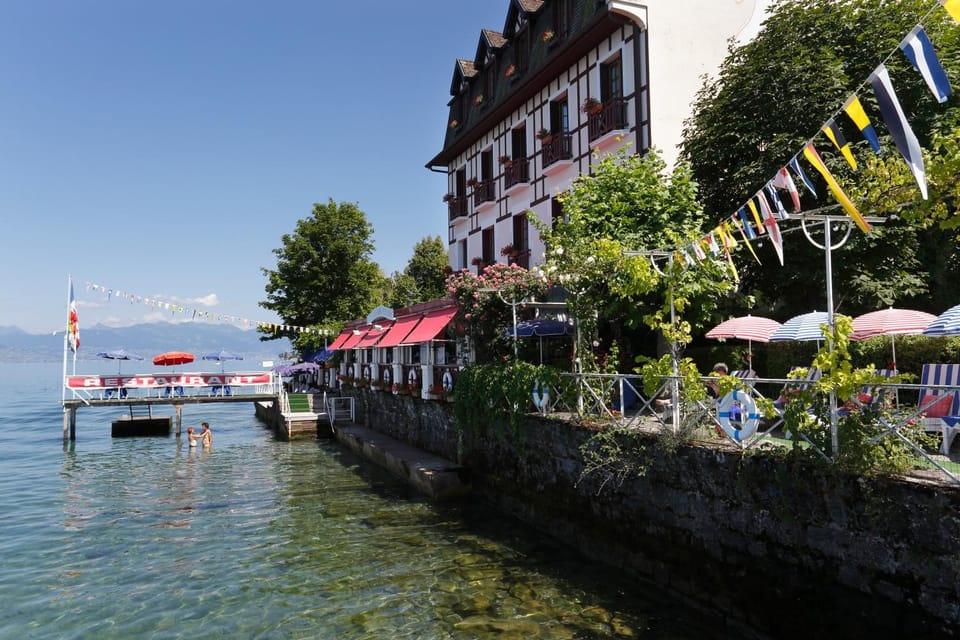 Les Cygnes waterfront hotel offers splendid views of Lake Geneva, a swimming pool and a gastronomic restaurant. You can relax on the private beach or on the terrace in the garden.