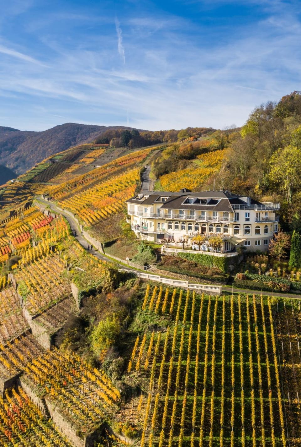 "The hotel boasts a breathtaking view over the rolling vineyards — a setting of pure tranquility and quiet charm.