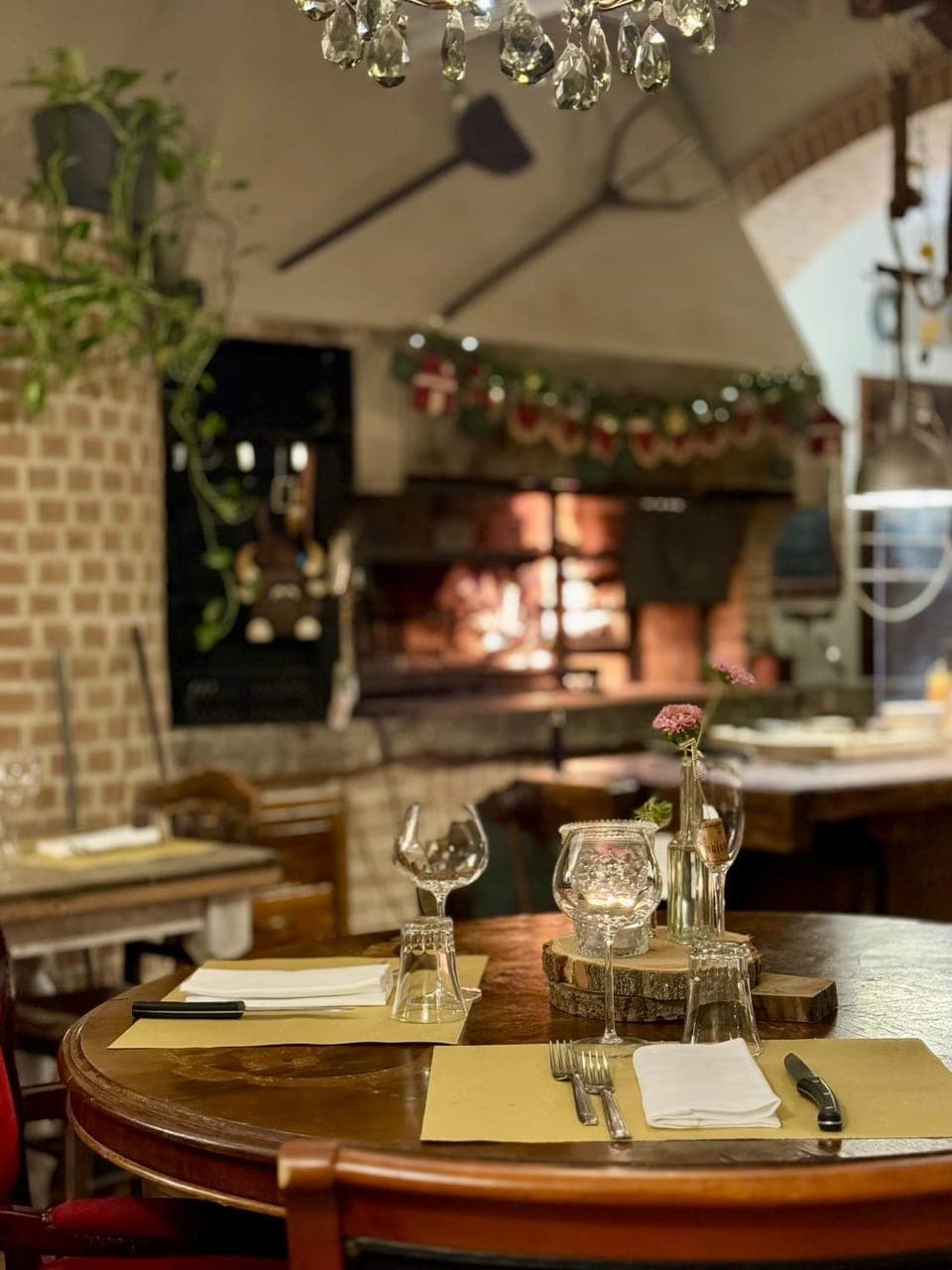 Location curatissima nei dettagli ed immersa nel verde, atmosfera accogliente e rilassante. La proprietaria alle prese con la cottura della carne sulla brace a vista con estrema dedizione e professionalità, uno spettacolo per gli occhi.