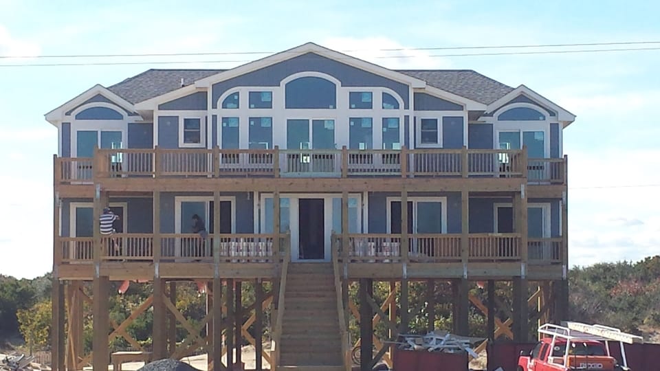 COME DOWN AND ENJOY AN AREA UNLIKE ANY OTHER ON THE EAST COAST. Grab the family and drive your four wheel drive type vehicle to the edge of the pavement, shift into that four wheel drive or the AWD that you don't use enough, and set out for your family adventure up the beautiful sandy coast of eastern North Carolina. Experience the beach like it used to be for our great grandparents, wide open and free. **WARNING; After coming to this beach, every other beach you visit in your life will probably feel "crowded"** This area is also home to multiple bird sanctuaries and home to the wild Corolla horses, North Carolina's official state horses. These horses are believed to be descendants of wild mustangs brought over from Europe many, many years ago. They are absolutely beautiful animals and roam the area at will. Note: We hate added fees that some houses like to add at the end. We have heard from our past guests that they also hate these fees. Please keep that in mind when comparing houses. Linens, maintenance, cleaning, pool, and pet fee are already included. No nickle and diming here. We also rent Saturday to Saturday in the summer (May to September) so we can help as many families as possible enjoy the beach. Our house is located about 7 miles up the coast from the end of the pavement along one of the widest areas of beach in the area. We chose this lot because it is highly elevated and gives great ocean views from all decks. When you arrive at the house you will enjoy all the modern amenities of today plus some. This elevated semi-oceanfront (one lot back) home features eight bedroom (4 Master King Ocean view bedrooms, 2 Master Queen Ocean view Bedrooms, 2 Duo bunk Bedrooms). There will be no fighting over bathrooms as every room has its own master bath. (This saves so much tension when travelling with extended family or friends. We included this when custom designing the house as I believe this is a must have.) All the king and queen rooms also have direct access to deck with ocean views. ( Another must have with large groups. ) The sunrise is literally just outside your door. The large kitchen will make any Chef smile with joy with an over sized double oven, two dishwashers, two refrigerator/freezers and a wine fridge. Two icemakers for those frozen drinks also. When is the last time you cooked and had views of the Atlantic Ocean just out the window? No better coffee brewing view around:) The dining room is very well sized with seating for the entire family with windows that allow you to watch the sunset over the woodlands to the west. Bring some popcorn, because the kids will absolutely enjoy movie night with the family in your own personal big screen theater room. It can get pretty intense and loud though if watching sporting events. Mom and dad will love having the private pool and hot tub to relax in with the family without worrying about sharing it with anyone else. No community pool here! This house was built with the sole purpose of making family memories that last. The beach is a short walk down an unimproved easement directly in front of the house or we always hop in the car and tailgate for the day. Hanging out at the beach with the family is sooo much fun. There is some limited parking for a family member or two that do not have a four wheel drive vehicles for a nominal charge about 8 miles from the house. The beach and house are also very pet friendly. We absolutely hate pet fees and don't charge extra to bring you canine family member. Sorry, but no cats allowed. Pool is open March thru October. Please note all maintenance and cleaning fees are included. Once you visit, we truly believe you will be back like many of our previous guests. Even if you do not rent our house, you need to experience this area sometime in your life. We would love to help you with your vacation fun.