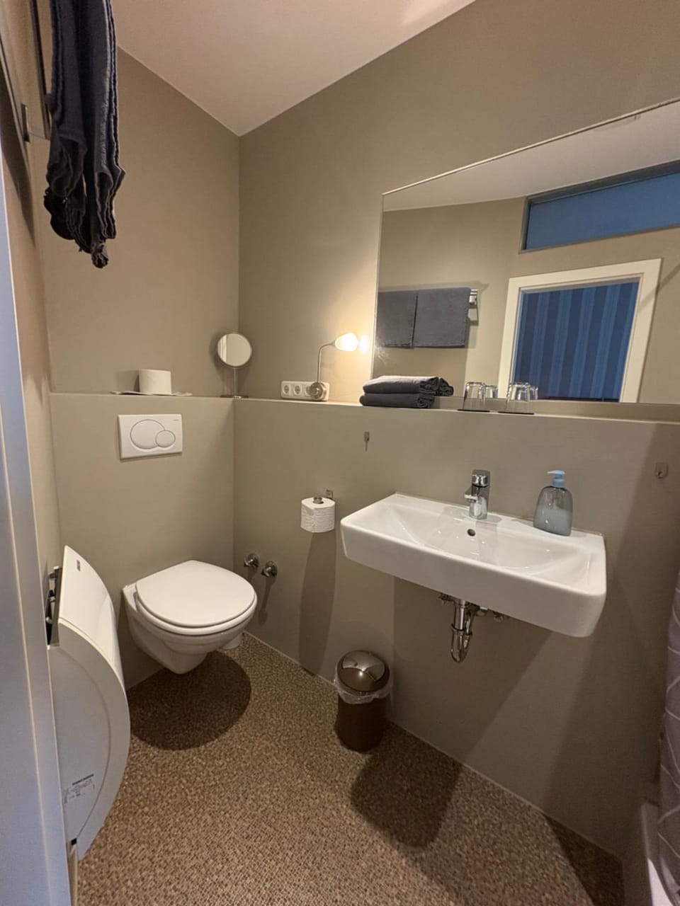 Zugang zum Bad für dieses kleine Zimmer befindet sich ausserhalb des Zimmers und es ist nicht augeschildert, ob das Bad nur zum Zimmer gehört. (Scheint aber so zu sein.)