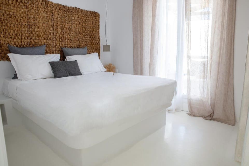 Modern cycladic design, absolutely spacious room and beautiful balcony where you could watch the sunset. A short walk into Naousa. The staff husband and wife were exceptionally wonderful hosts. The husband picked us up from the port for a small fee saving us from having to take a taxi, and the wife made us a wonderful breakfast every morning as well as constantly checked up on us to make sure we were having a good time. I highly recommend this place.