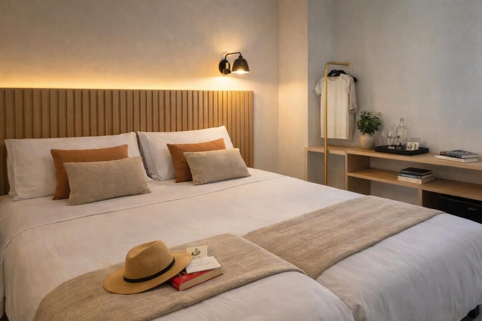 Great central location, clean and spacious room with friendly staff, aircon and TV. USB chargers are handy on the bed too. Laundrette nearby too along with supermarket and marina/beach.
