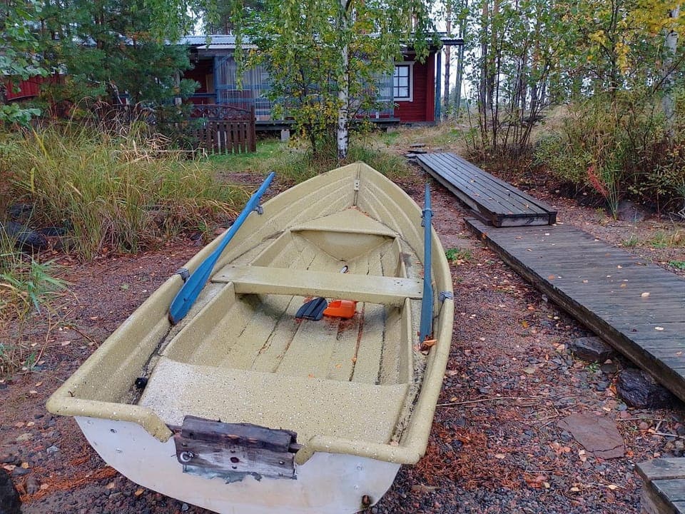 Loistavalla sijainnilla oleva viihtyisä mökki, josta perusvarustelu löytyy. Kännykät sai vaivattomasti ladattua pistorasioissa, joihin sähkö tuli akuista. Myös valaistus toimi, keittiötä lukuun ottamatta hienosti. Soutuvene liiveineen oli mukava lisä. Saunan vesipumppu ja kiukaan lämminvesipata toimivat hyvin.