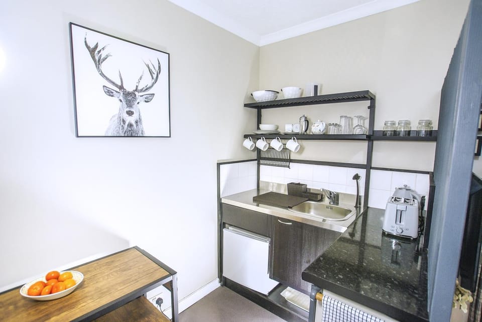 Although only small it had everything we needed for a 3 day stay . Spotlessly clean and very nicely decorated . Appreciated the Welcome pack on arrival consisting of bread , tea, coffee , milk, fruit, breakfast cereal , fresh orange juice. There are limited cooking facilities ( a microwave and a kettle ) which was fine for us as we did not intend to do much in terms of self catering. The owners , Pat and bill live in the attached property and were on hand to meet and greet us and were keen to make sure everything was as expected.