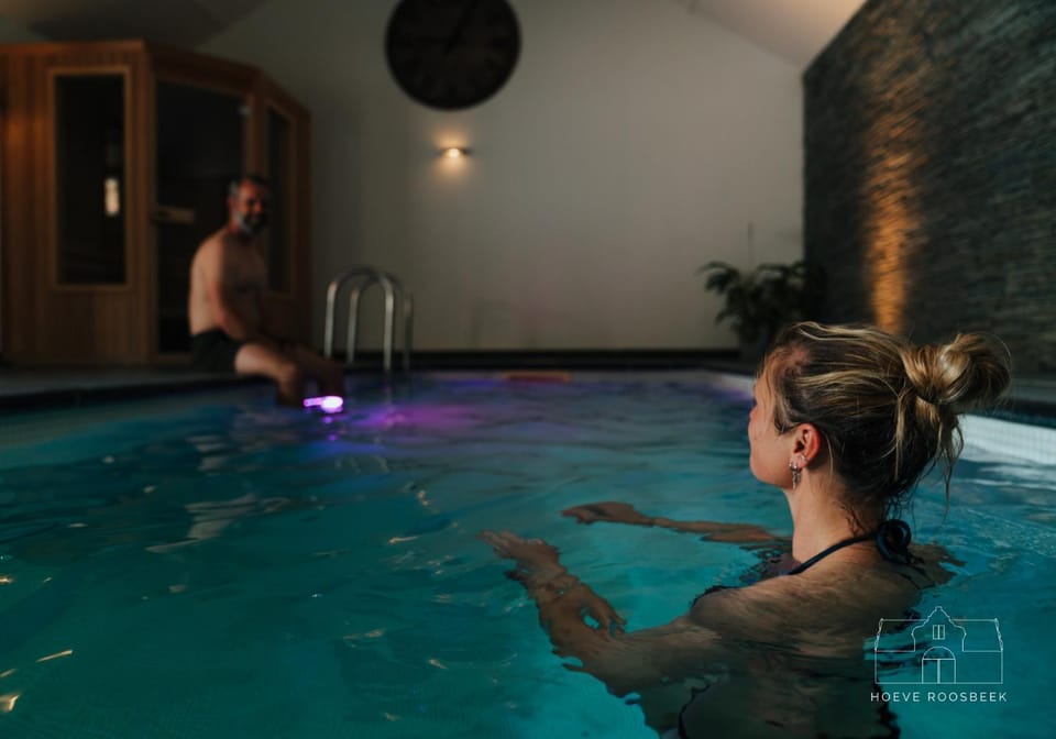 Yes, a swimming pool is available for use at Hoeve Roosbeek. Enjoy the water!