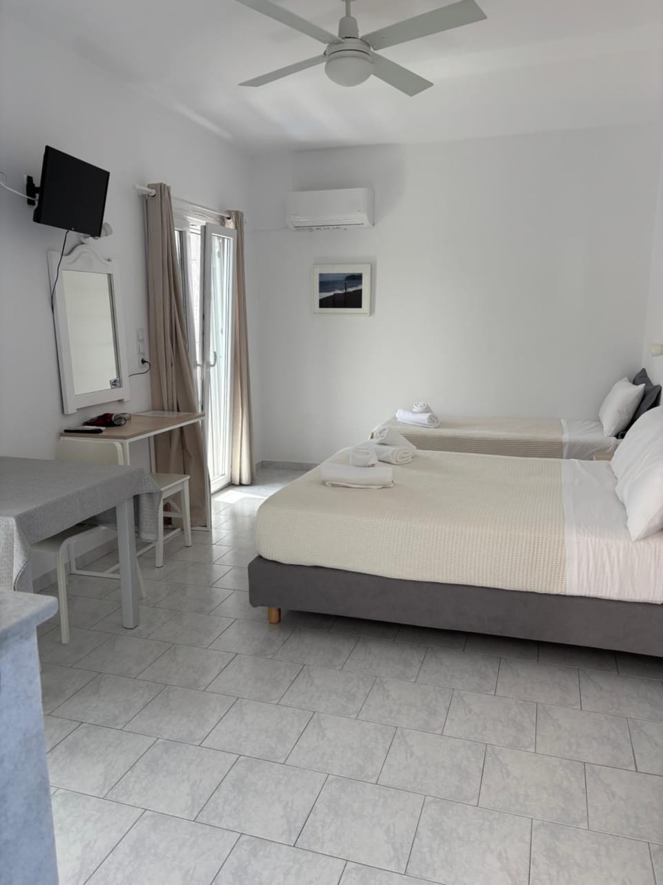 The location is convenient—not far from the sea, beautiful beaches, and the city center of Parikia. The apartment is situated in a quiet and peaceful area, which made our stay relaxing and enjoyable.