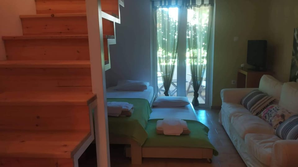 An amazing weeks stay after island hopping in the Saronic Gulf. We came here for some R&R and this oasis definitely provided this. The pool and garden were spotless and peaceful, plenty of loungers and chill out areas. We had the two bedroom apartment as one of my daughters was working and the upstairs space was ideal to set up her laptop etc. Eli and Vasilis were very approachable and helped out with getting taxis etc. The rooms were kept spotlessly clean by a daily visit from the very hardworking Stelina. The location was superb with a brilliant bakery opposite which kept us in lunch and breakfast and also a supermarket withich sold everything you could possibly need. Also near was Poros One , a hire place where we got e-bikes on a few days, the owner was really helpful and kind and let us keep the bikes for the evening for free. Local beach great, nicer ones a short walk away.