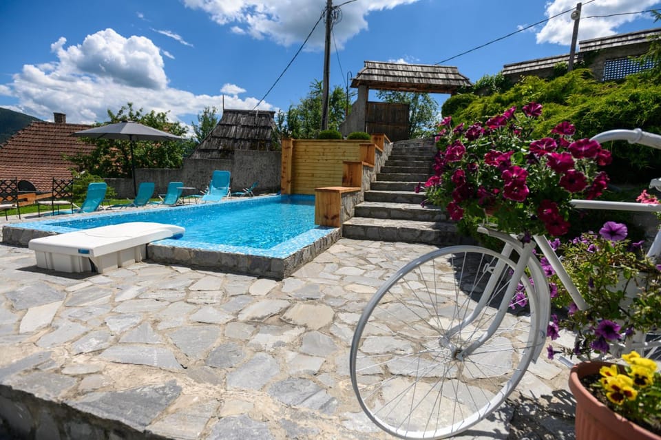 Yes, a swimming pool is available for use at Neva sobe sa pogledom na planine. Enjoy the water!