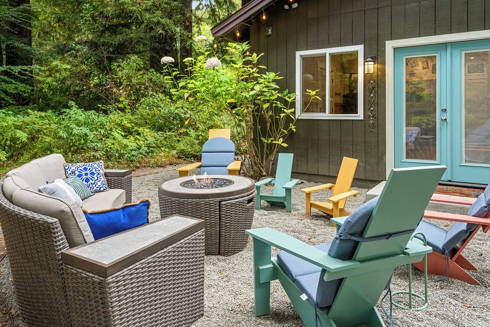 Your retreat at Seventeen Sequoias extends into the recently remodeled house as a place to relax and recharge any time of year. Play board games in front of the living room fireplace or catch up on movies, snuggling on the extra-long leather sofa and comfy chairs. The refreshed kitchen boasts a fantastic amount of counter space, cabinets well-stocked with pots, pans and kitchen tools, and stainless steel appliances including a Jenn-Air range. You may not want to leave to explore the excellent restaurants in Duncan's Mills or nearby Jenner, but if you do, you'll love returning to Seventeen Sequoias!
